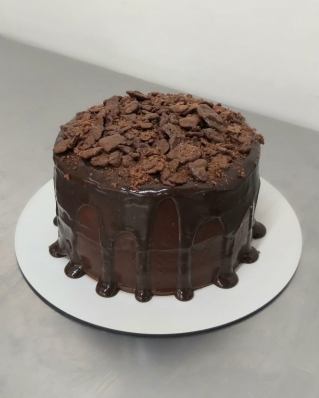 Massa de pão de ló de chocolate, recheada com uma camada de brigadeiro preto artesanal com pedacinhos de Ovomaltine em barra e um recheio de brigadeiro preto artesanal. Cobertura de ganache de chocolate artesanal, finalizado com o irresistivel e crocante Ovomaltine Rocks.