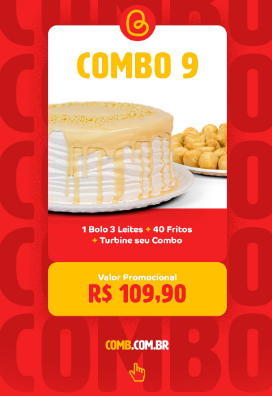 Contém: O bolo com massa branca e duas camadas de brigadeiro 3 leites (leite condensado, creme de leite e chocolate branco) , rendendo 10 fatias (peso médio 1kg) mais 40 salgadinhos: 20 coxinhas e 20 salsichas empanadas.