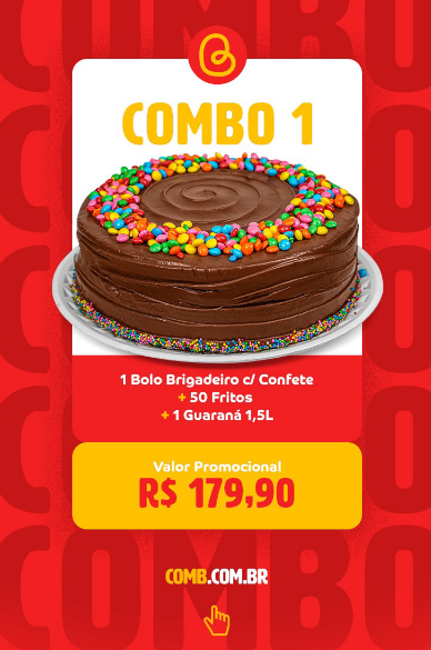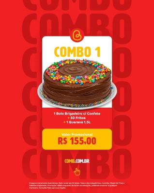 Especificações do produto: 01 Bolo Bokitos com recheio de brigadeiro 15 fatias (massa de chocolate com uma camada de recheio de brigadeiro preto artesanal, coberto com ganache de chocolate e confeitos coloridos) + 50 salgadinhos (20 coxinhas, 15 risoles de queijo e presunto e 15 salsicha empanada) + 1 Guarana Antarctica de 1,5L. Rendimento do bolo: em torno de 15 fatias. |