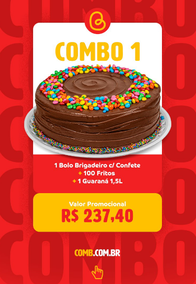 Especificações do produto: 01 Bolo Bokitos com Recheio de Brigadeiro (massa de chocolate com uma camada de recheio de brigadeiro preto artesanal, coberto com chocolate e confeitos coloridos) + 100 salgadinhos (40 coxinhas + 20 risoles de queijo com presunto + 20 risoles de carne + 20 salsicha empanada) + 1 Guarana Antarctica de 1,5L. Rendimento do bolo: em torno de 15 fatias. |